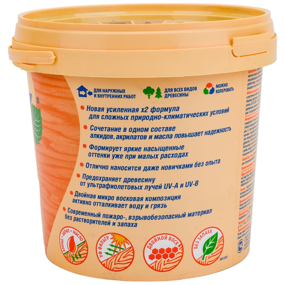| Состав | состав на алкидно-акрилатной основе с добавлением льняного масла, биоцидов, активных УФ-фильтров, микровосков |