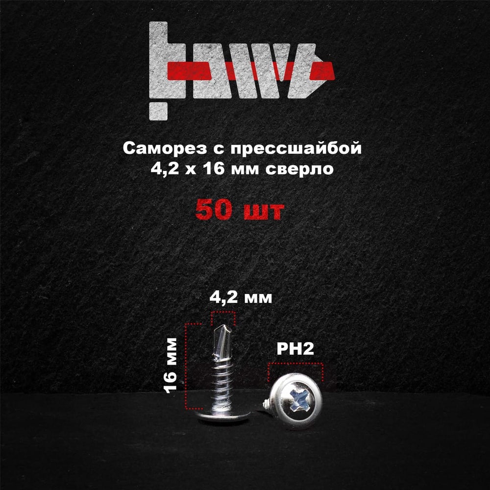 Саморез с прессшайбой BOWT сверло, 4,2x16, 50 шт. P02352