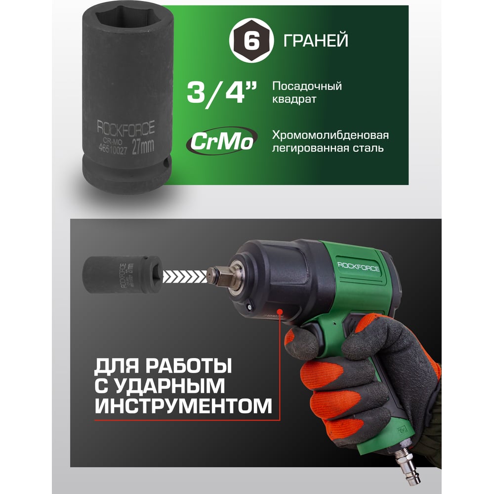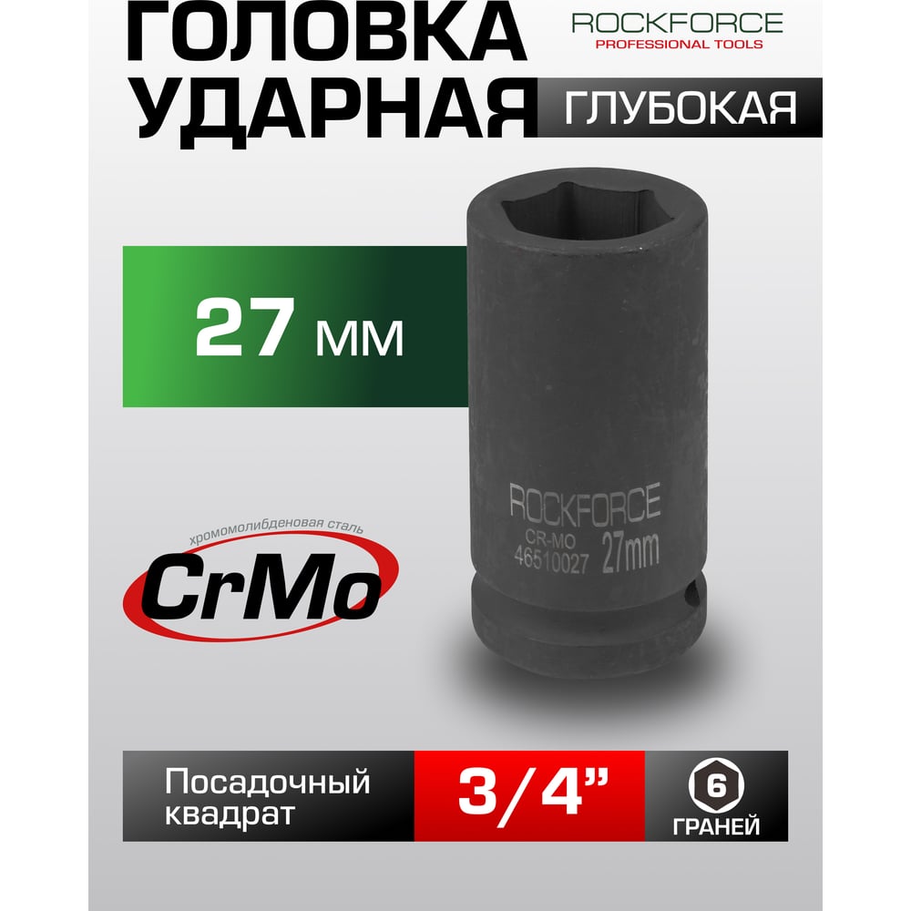 Головка торцевая ударная удлиненная (27 мм; L=85 мм; 3/4DR) ROCKFORCE RF-46510027(8502)