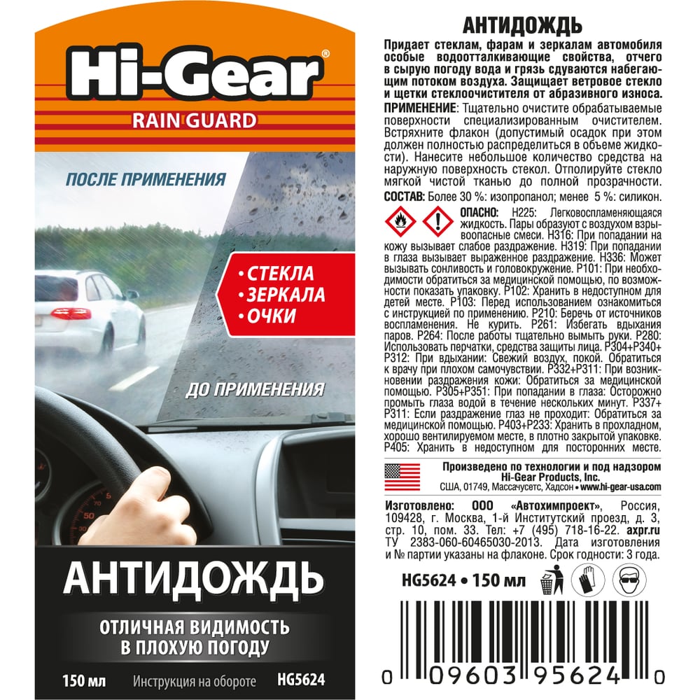 Антидождь Hi-Gear 150мл, полимерное покрытие HG5624