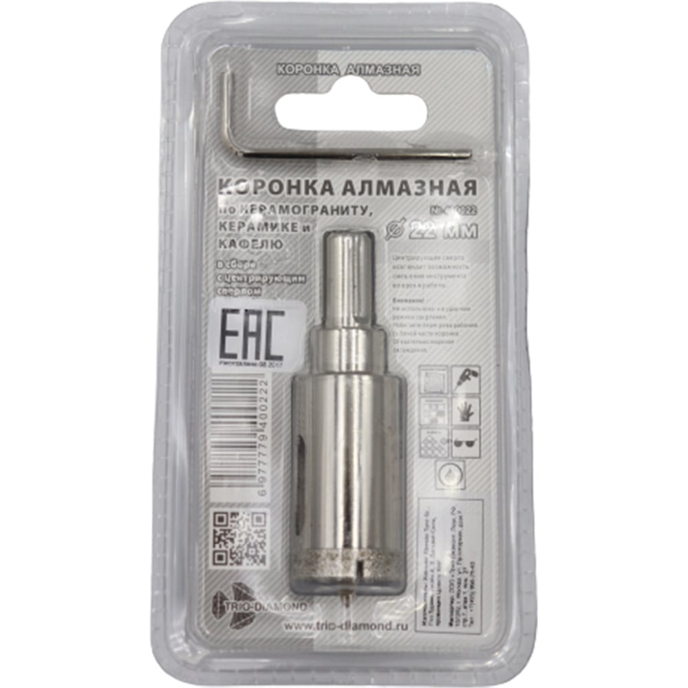 Коронка алмазная по керамике и кафелю с центрирующим сверлом TRIO-DIAMOND 22 мм 400022