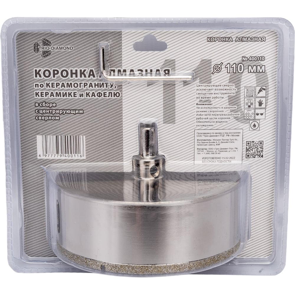 Trio-diamond коронка алмазная по керамике и кафелю с центрирующим сверлом 110мм 400110
