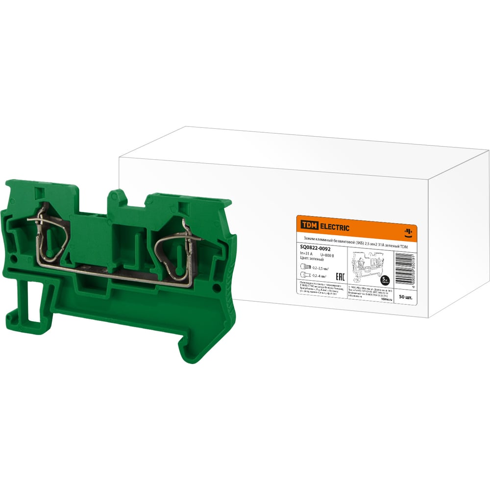Безвинтовой клеммный зажим TDM ELECTRIC (ЗКБ) 2,5 кв. мм, 31А, зеленый SQ0822-0092