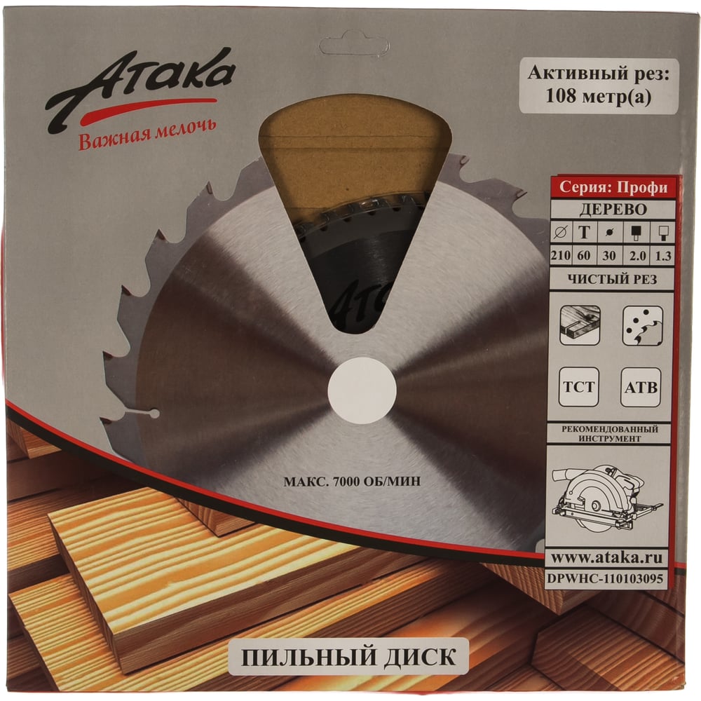Диск пильный (210 мм; 60T; 30 мм) по дереву профи АТАКА 8079560