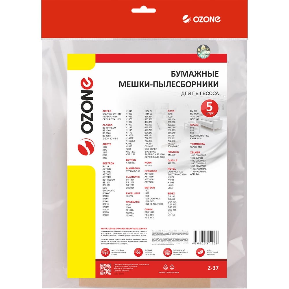 | Модель мешка | 37 |