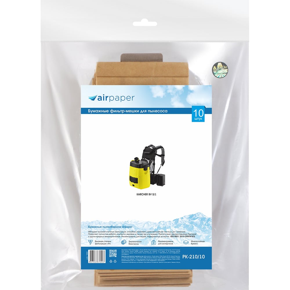 Бумажные фильтр-мешки для пылесоса AIR Paper PK-210/10