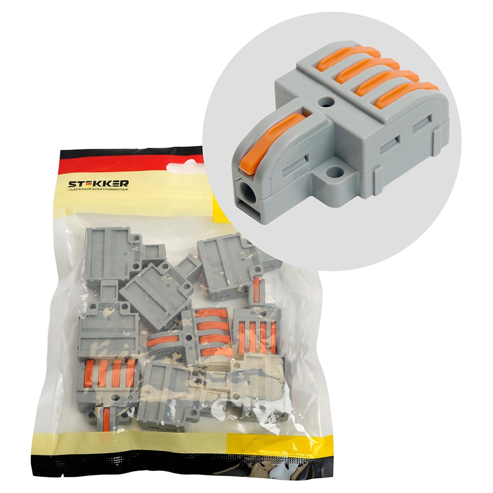 Клемма супер-компактная разветвительная STEKKER 1 вход, 4 выхода, наборная, LD220-104 (DIY упак 10 шт), 49792