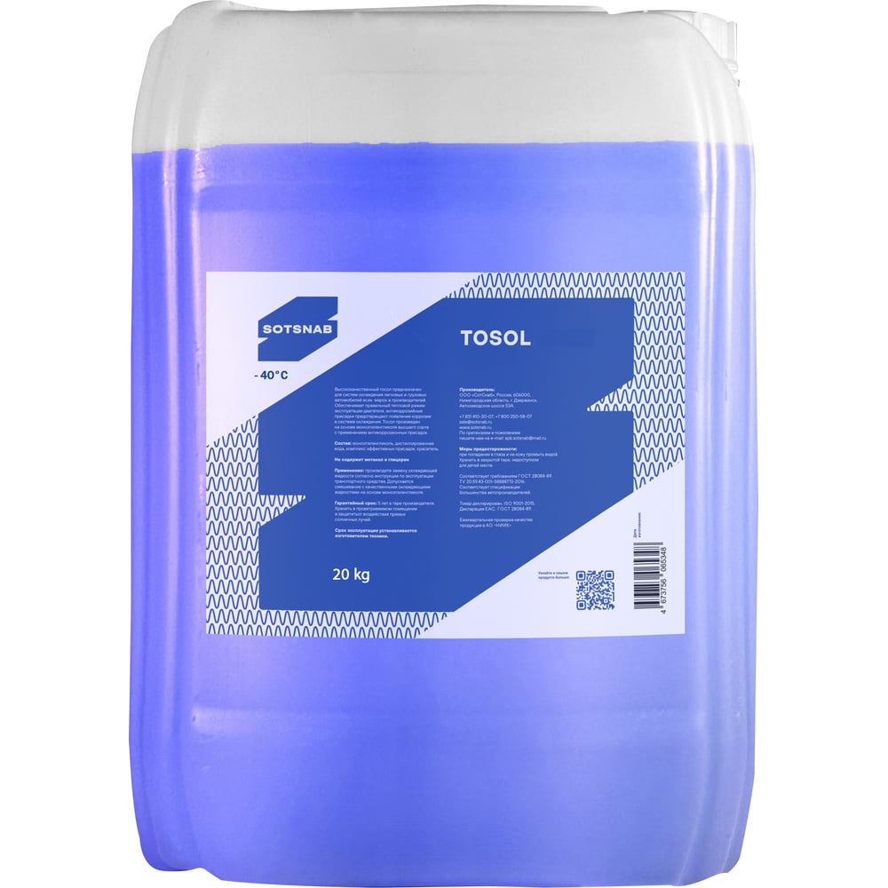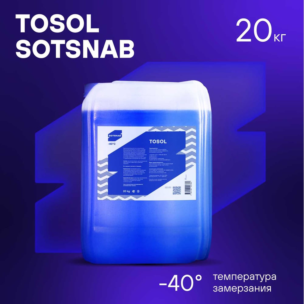 Тосол для двигателя автомобиля SotSnab А-40 МД, (-40), охлаждающая жидкость 20 кг ТОСА-30.20