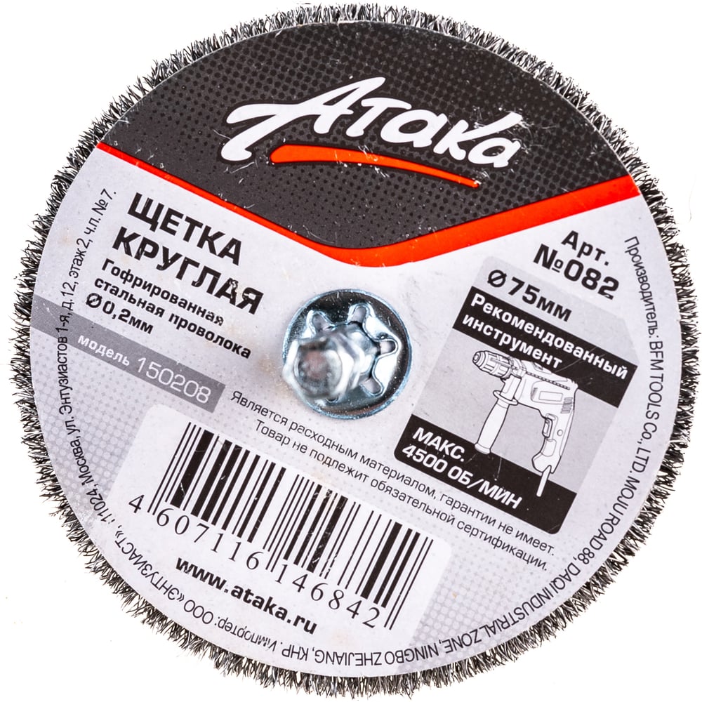 Дисковая гофрированная щетка Атака №082 5407506120 d 75 для дрели шестигранный хвостовик 22386