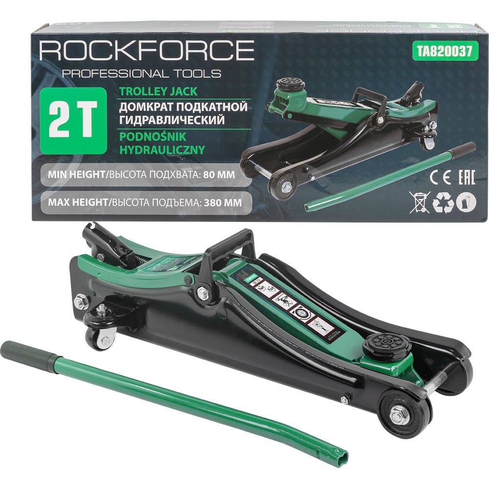 Домкрат подкатной гидравлический Rockforce 2т (h min - 80мм, h max - 380мм) RF-TA820037(52769)