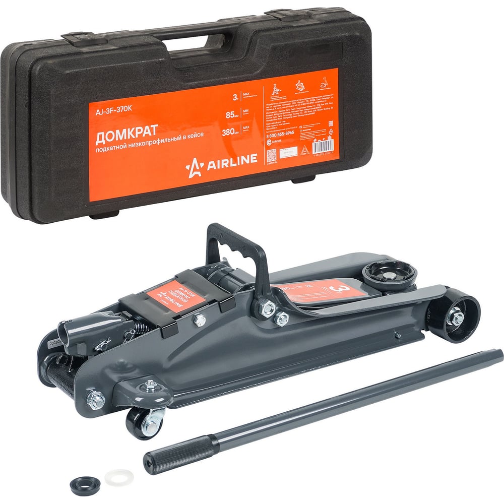 Домкрат подкатной 3т Airline низкопрофильный в кейсе (MIN - 85 мм, MAX - 380 мм) AJ-3F-370K AJ3F370K