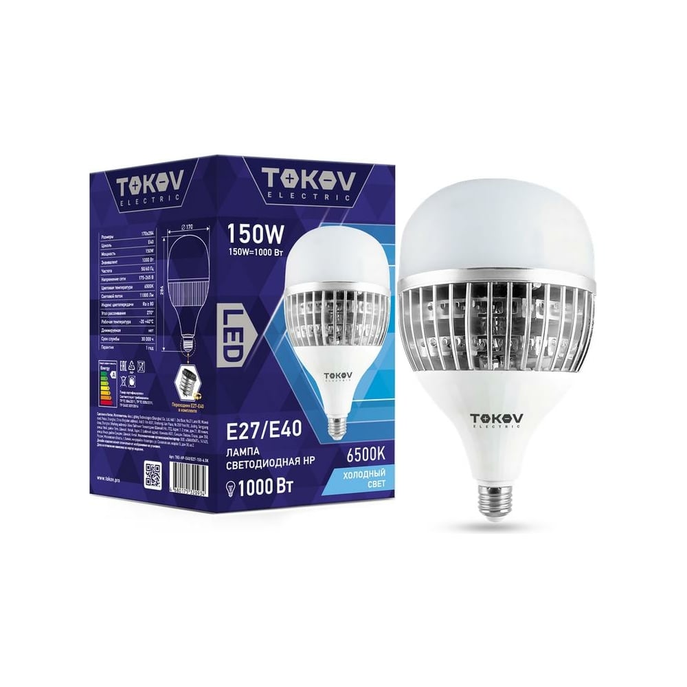 Светодиодная лампа TOKOV ELECTRIC TKE-HP-E40/E27-150-6,5K