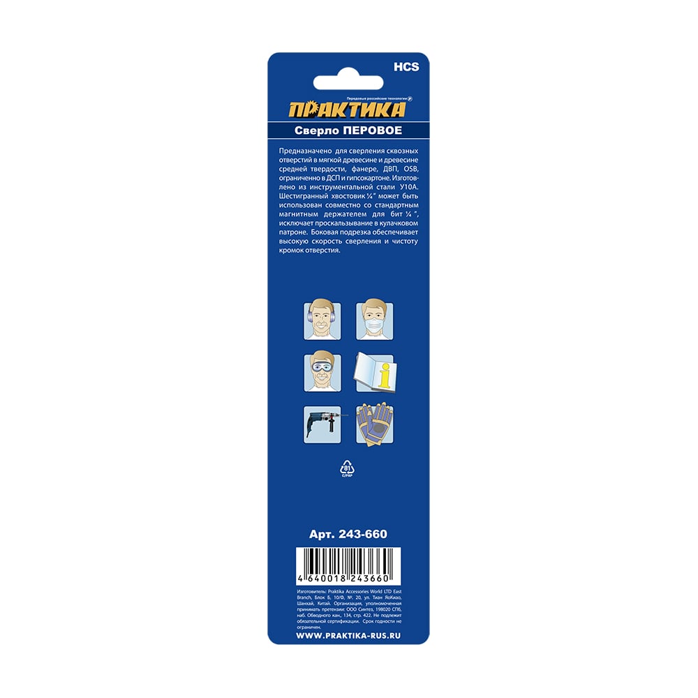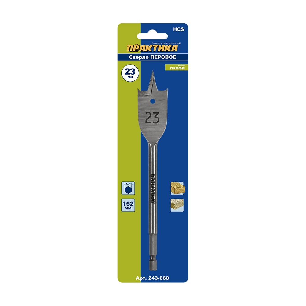 Сверло по дереву перовое (23х152 мм; блистер) ПРАКТИКА 243-660