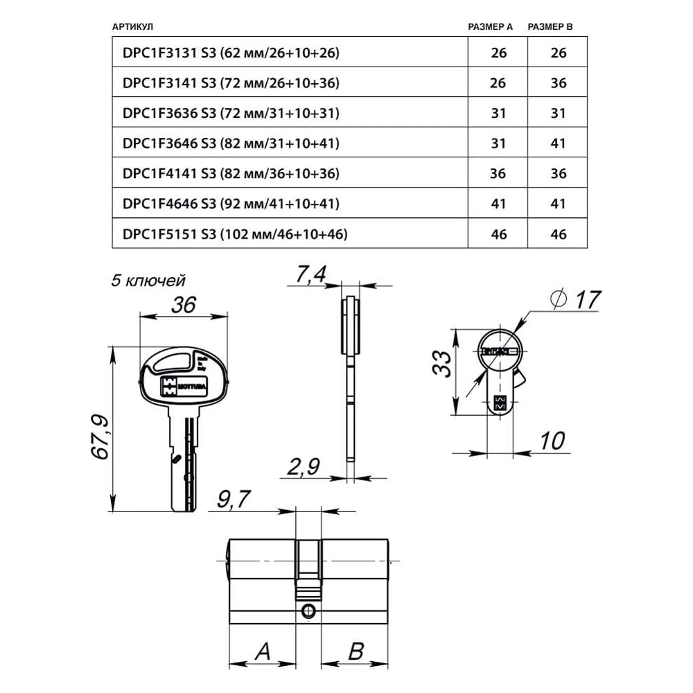 Цилиндровый механизм Mottura DPC1F5151 S3 35381