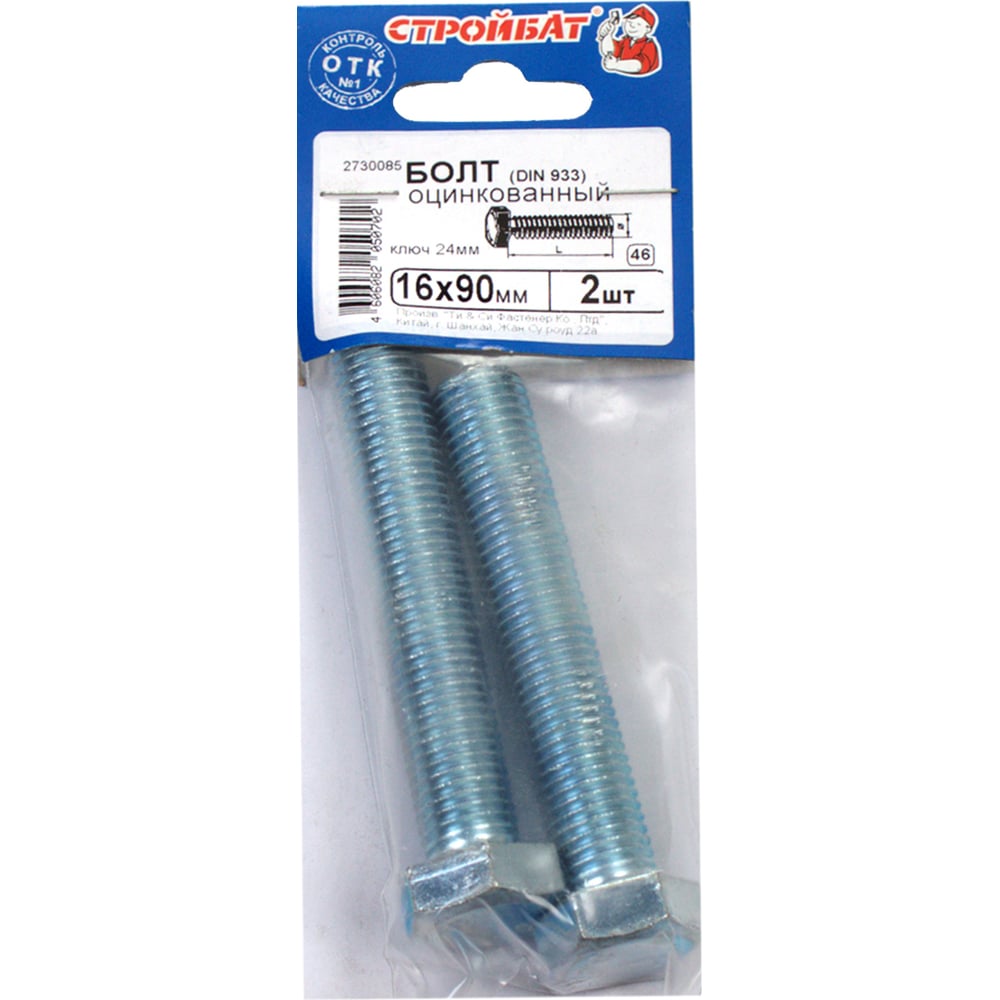 Болт Стройбат М16x 90 DIN933 2 шт 306440