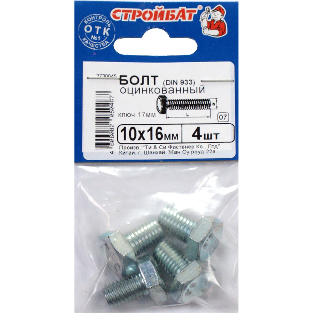 Болт Стройбат М10x 16 DIN933 4 шт 306200