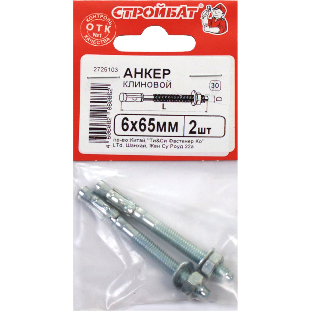 Оцинкованный клиновой анкер Стройбат 6x65 2 шт 353460