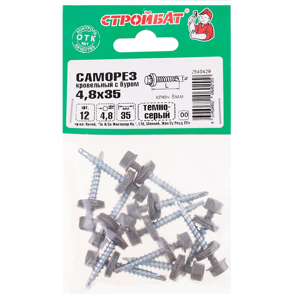 Кровельные саморезы Стройбат 4,8x35 темно серый 12 шт 352840