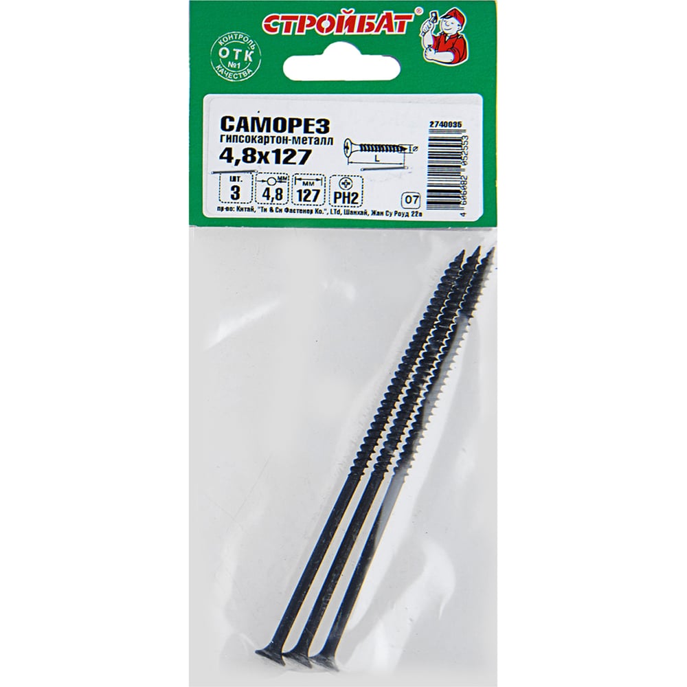 Фосфатированные саморезы гипсокартон-металл Стройбат 4,8x127 3 шт. 329121