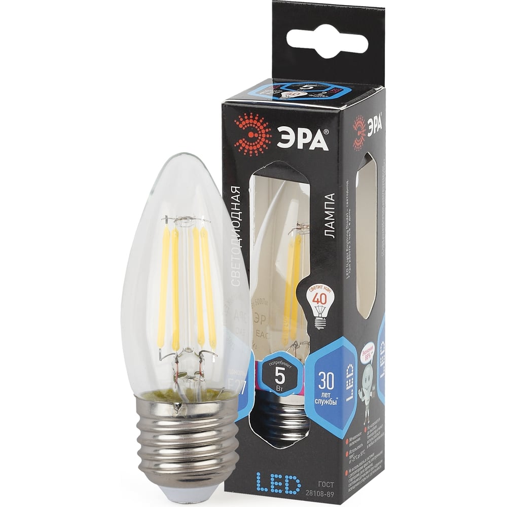 Светодиодная лампа ЭРА F-LED B35-5W-840-E27 филамент, свеча, нейтральный Б0027934