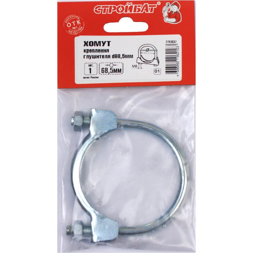 Хомут крепления глушителя Стройбат d 68,5 мм белый цинк 1 шт 360420