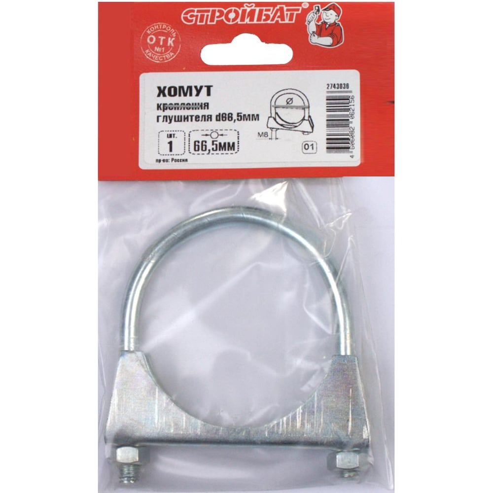 Хомут крепления глушителя Стройбат d 66,5 мм белый цинк 1 шт 360410