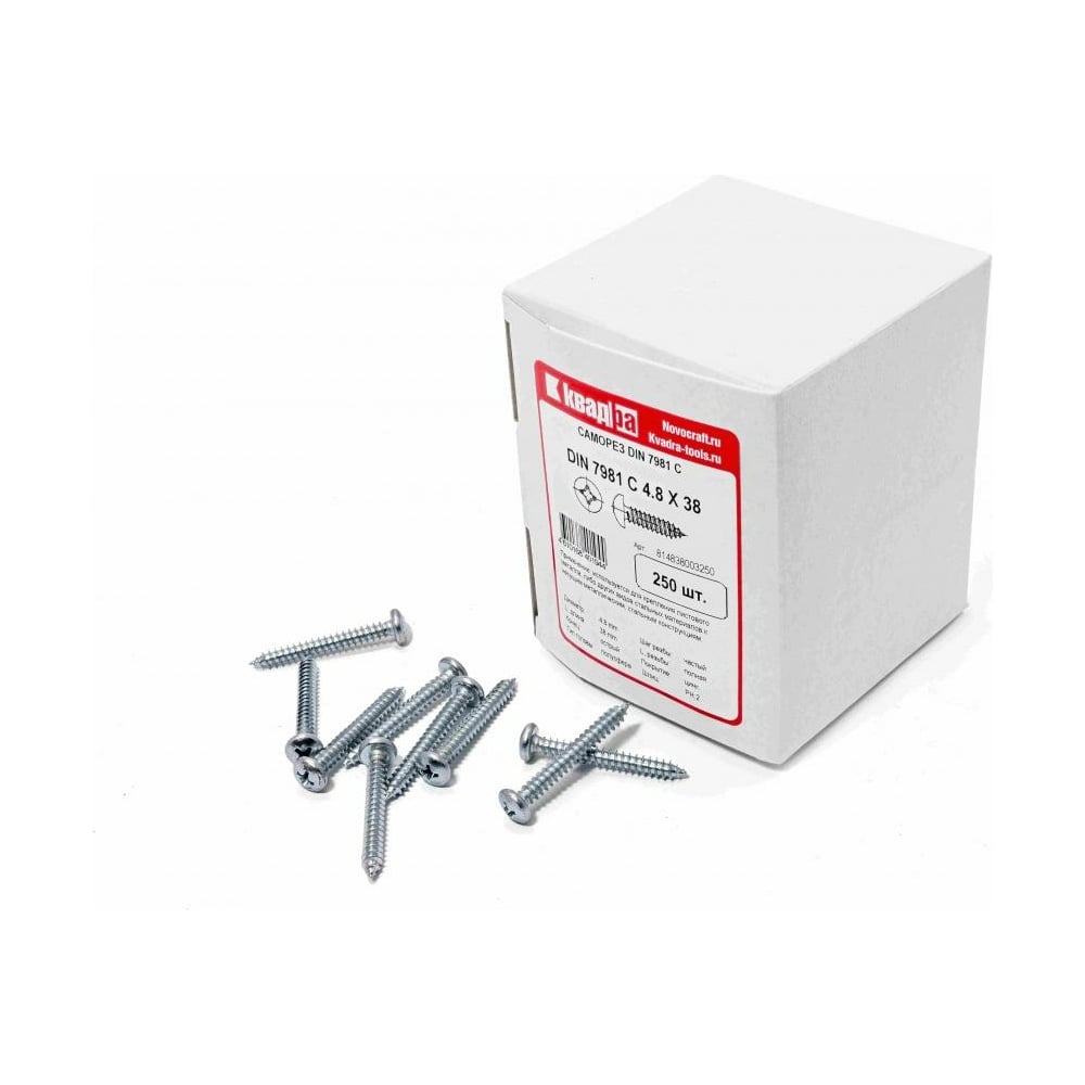 Острый оцинкованный саморез КВАДРА 4.8x38 DIN7981 250 шт. 814838003250