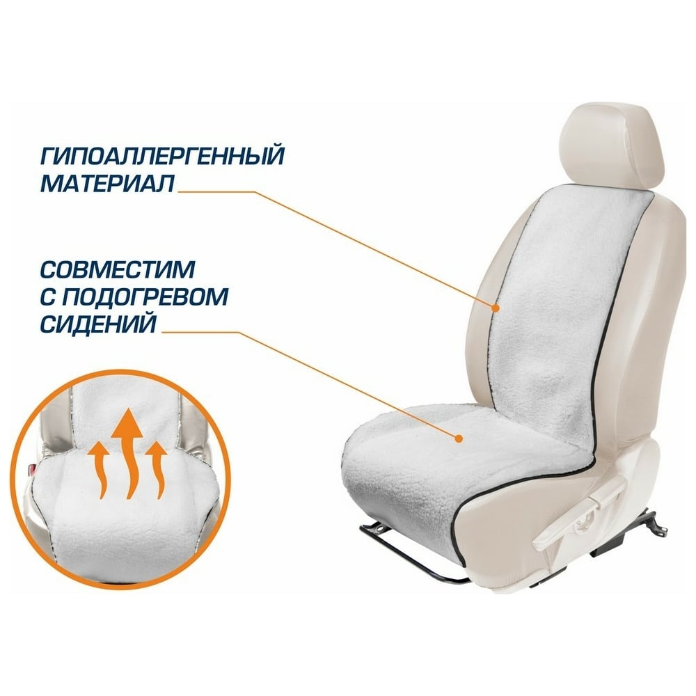Меховая накидка на сиденье автомобиля AutoFlex овчина, универсальная, 1 шт., цвет белый 91201