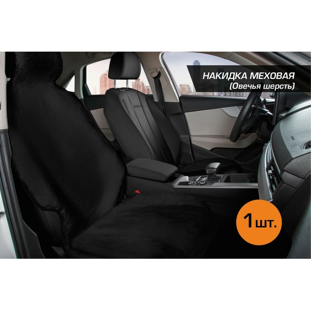 Меховая накидка на сиденье автомобиля AutoFlex из овечьей шерсти, с подголовником, 1 шт. 91216