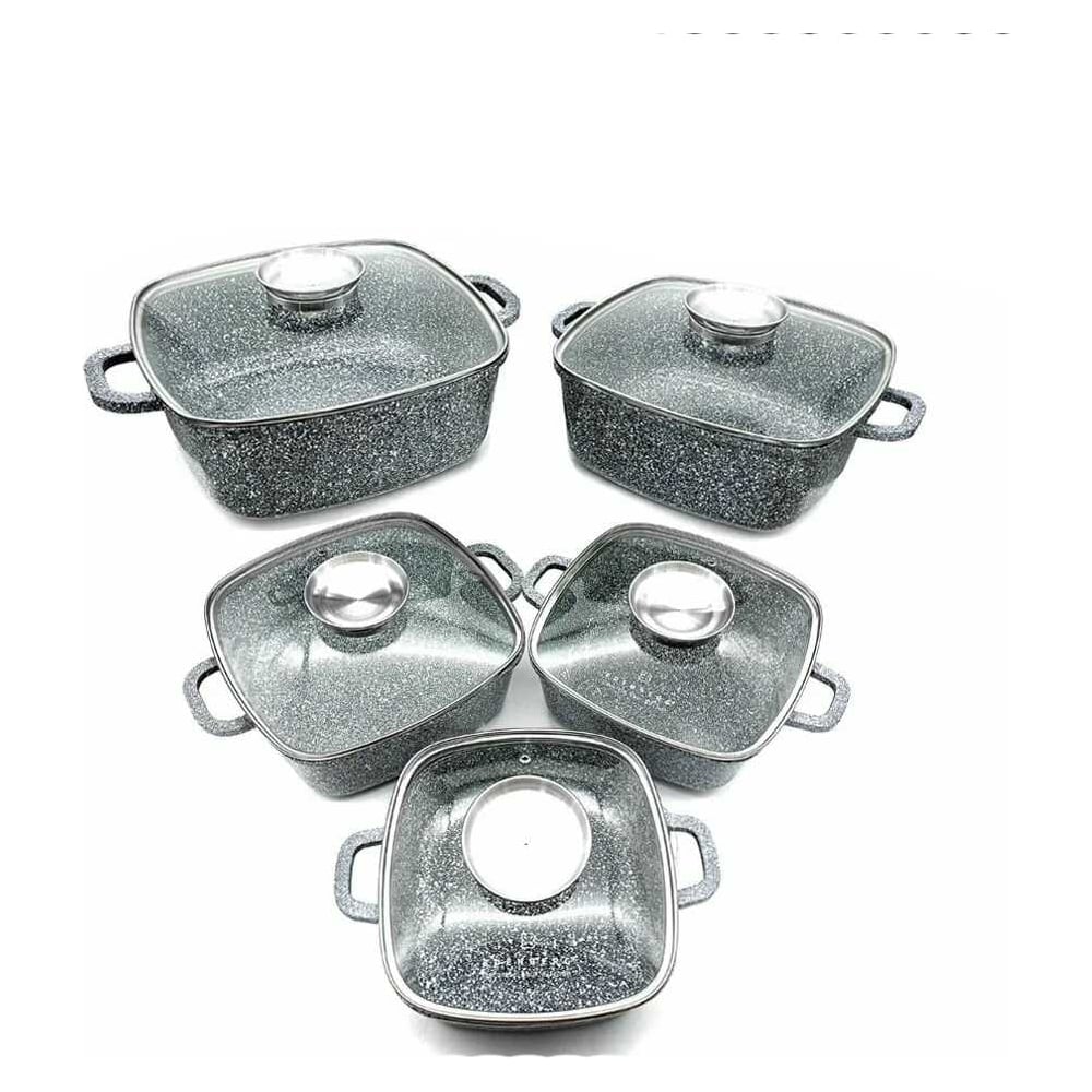 Набор квадратных казанов Edenberg 12 предметов, серый мрамор, 2.8/3.7/4.4/5.5/6.5 л EB-3987