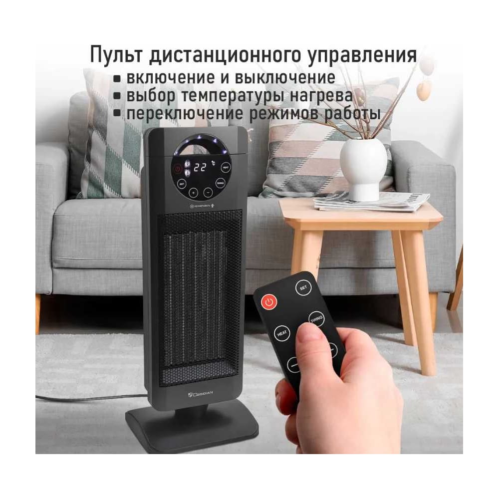 Тепловентилятор OBSIDIAN BS-FH2056B темное серебро керамический + пульт управления 41689