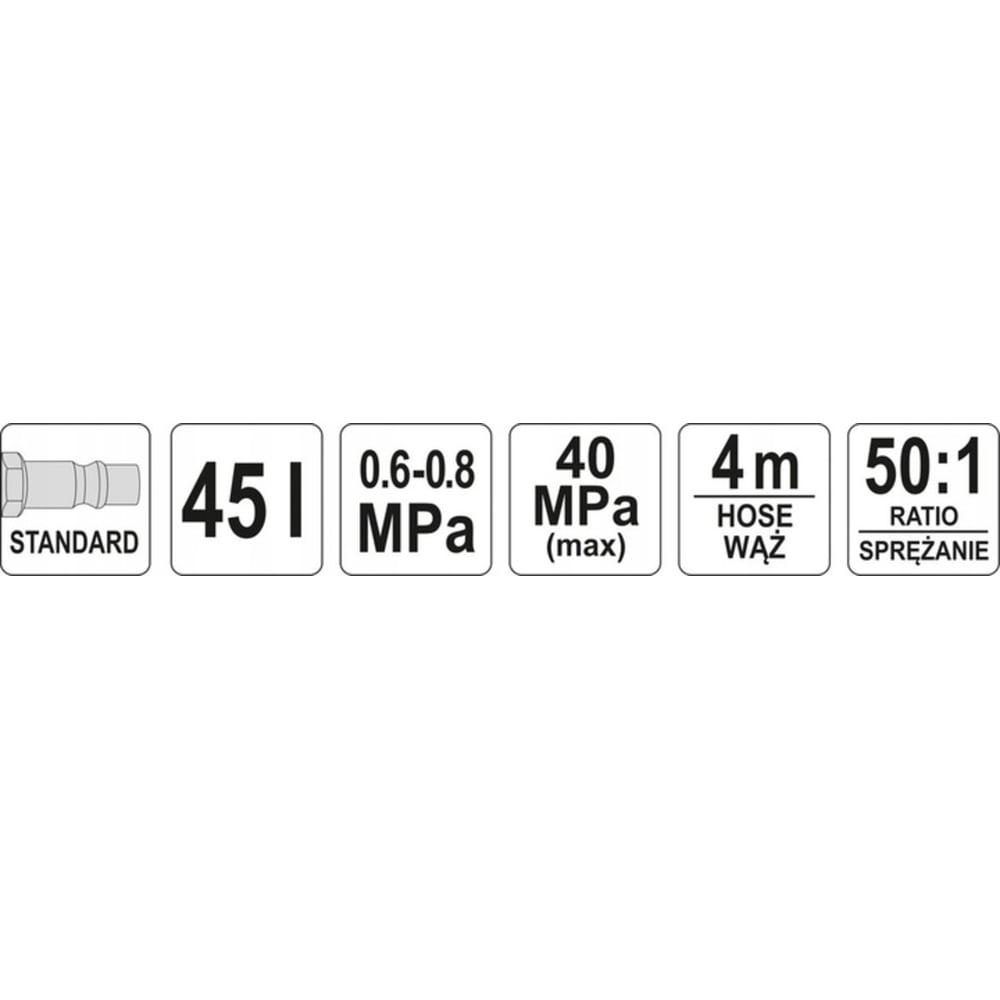 Пневматический нагнетатель консистентной смазки YATO 45л 40 MPa YT-07069