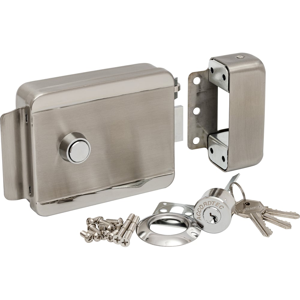 Электромеханический накладной замок ACCORDTEC AT-EL101A, универсальный, цилиндр снаружи, кнопка АТ-02404