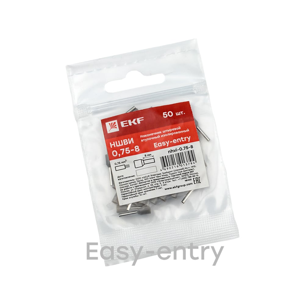 Штыревой втулочный изолированный наконечник EKF PROxima НШвИ 0,75-8 50шт. nhvi-0.75-8