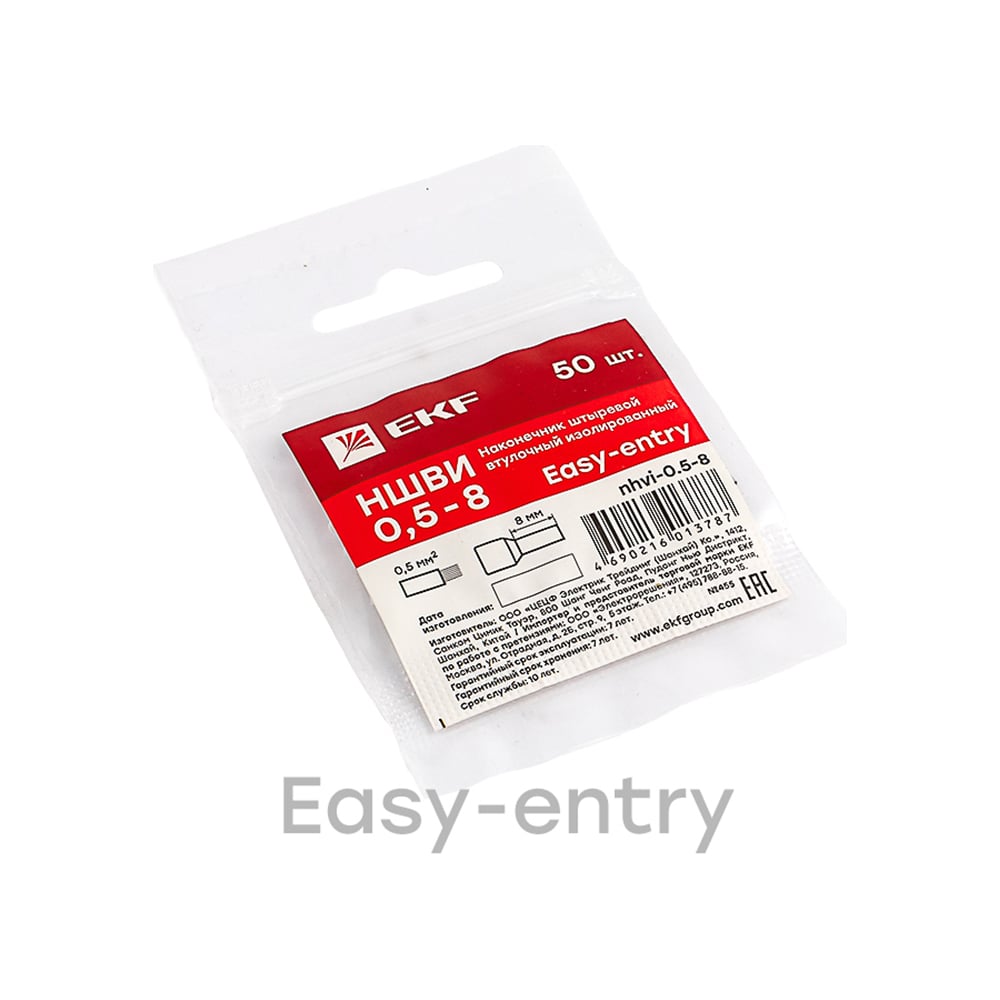 Штыревой втулочный изолированный наконечник EKF PROxima НШвИ 0,5-8, 50 шт. nhvi-0.5-8