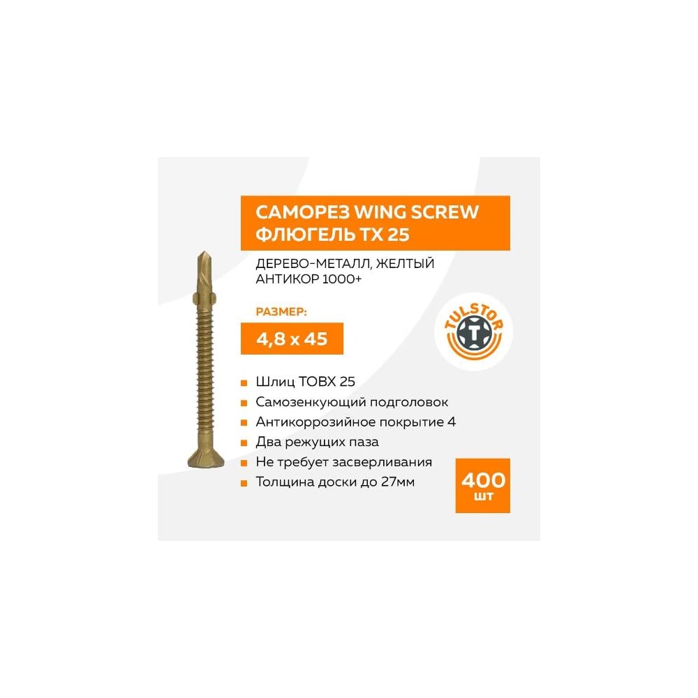 Саморез TULSTOR Wing Screw 4,8x45 400 шт. 404845