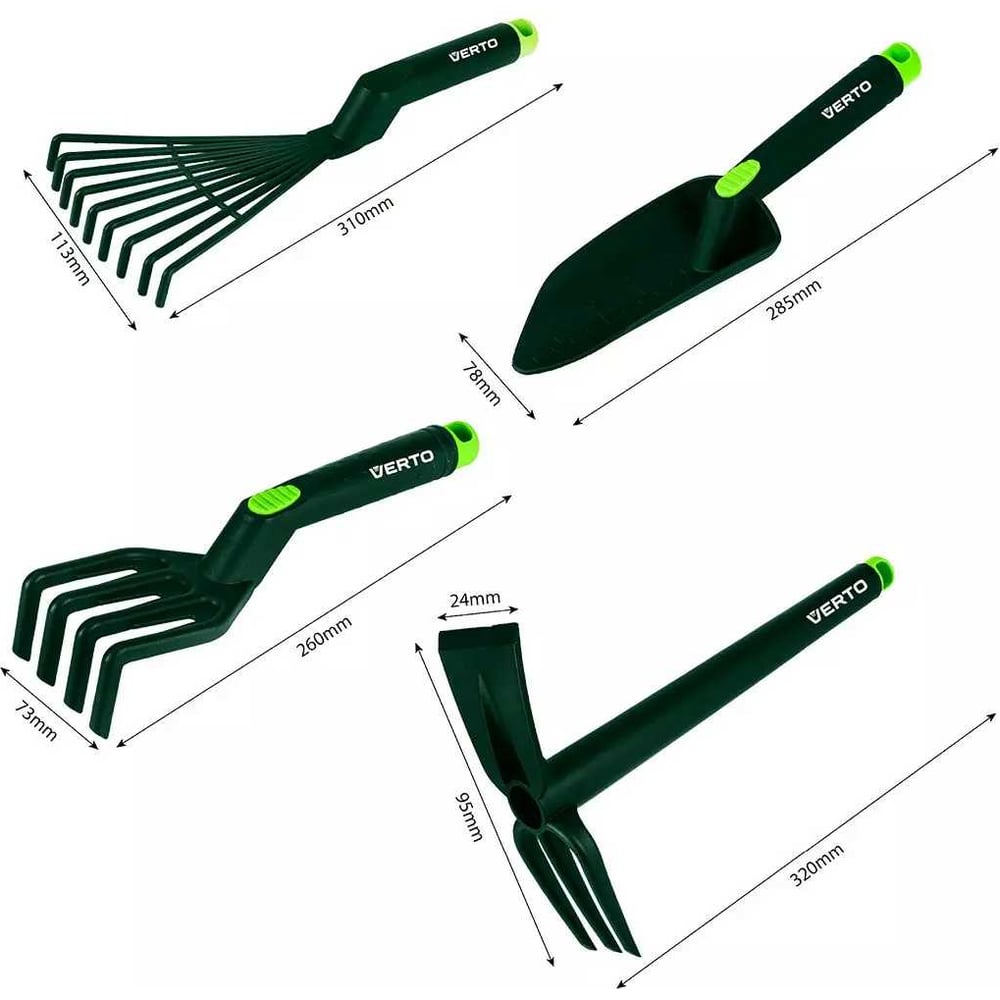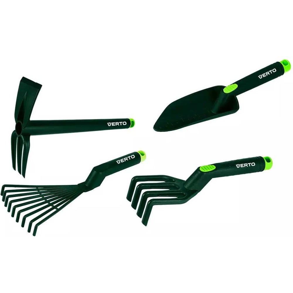 Набор ручных инструментов VERTO 4 шт, из пластика (грабли, когти, лопата, мотыга/клещи) 15G419