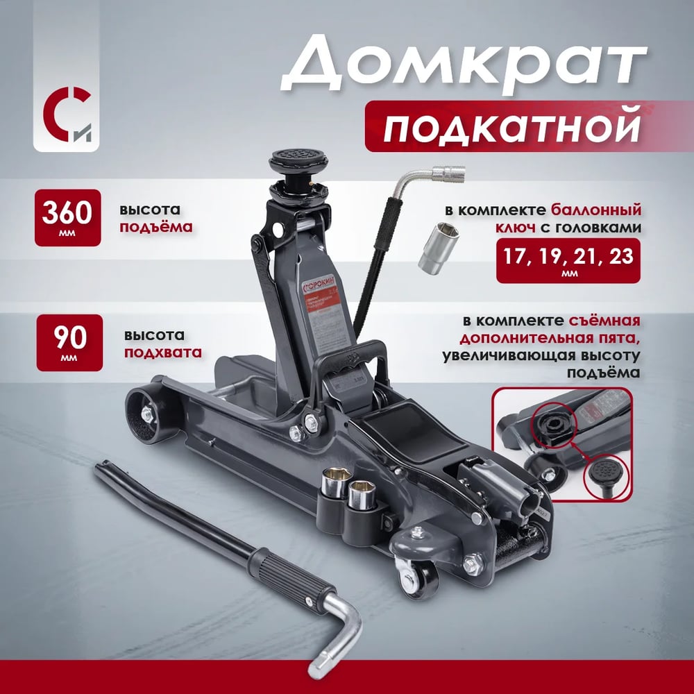 Подкатной домкрат HobbyLine 2,5 т (90-360 мм) Сорокин 3.525