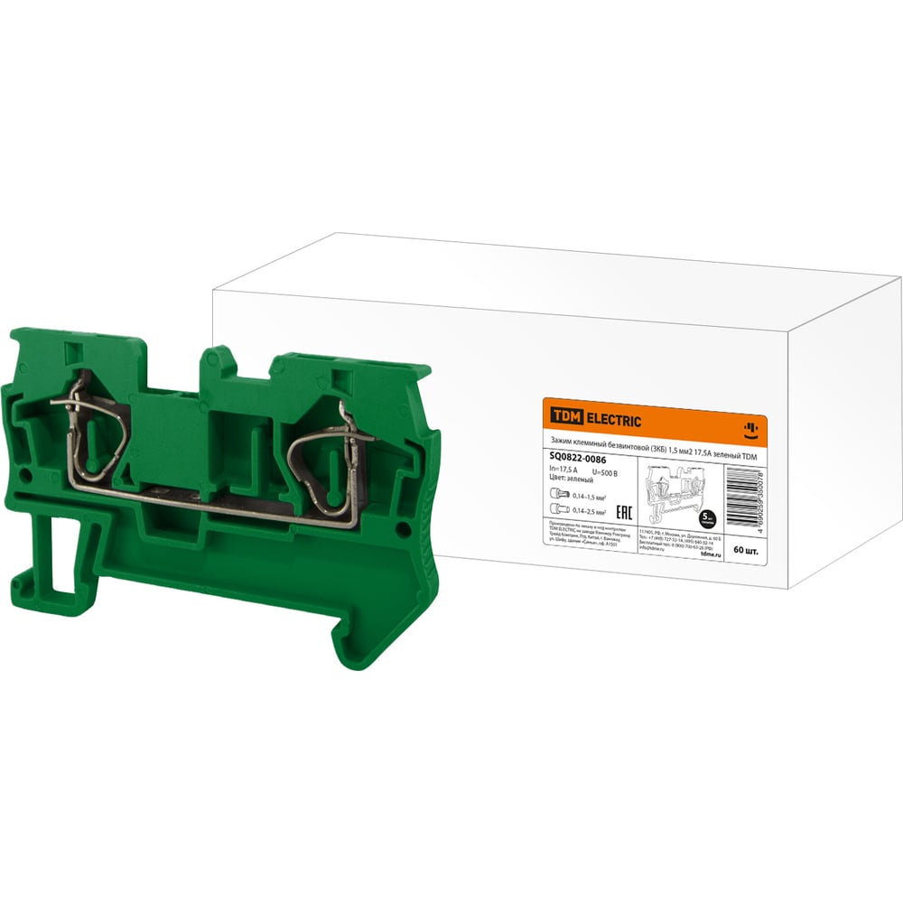 Безвинтовой клеммный зажим TDM ELECTRIC (ЗКБ) 1,5 мм2, 17,5А, зеленый SQ0822-0086