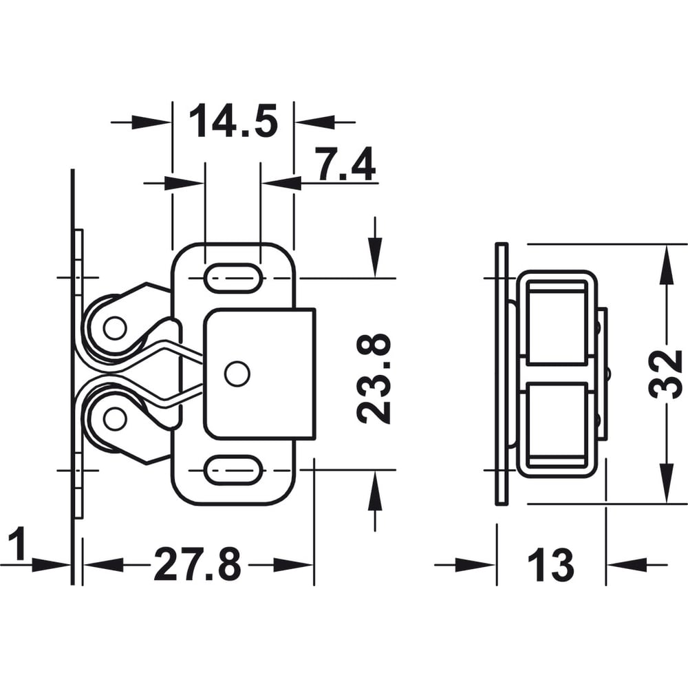 Двойная роликовая защелка Hafele 244.01.113