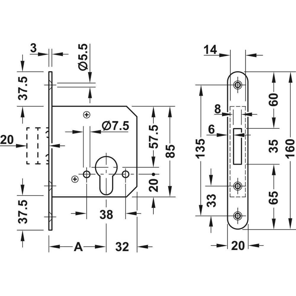 | Удаление ключевого отверстия (Backset) | 55 мм |