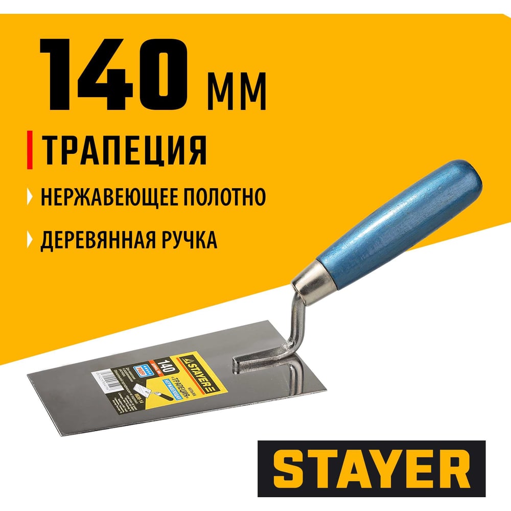 Кельма STAYER Professional трапеция, нержавеющее полотно, деревянная рукоятка, 140мм 0830-14