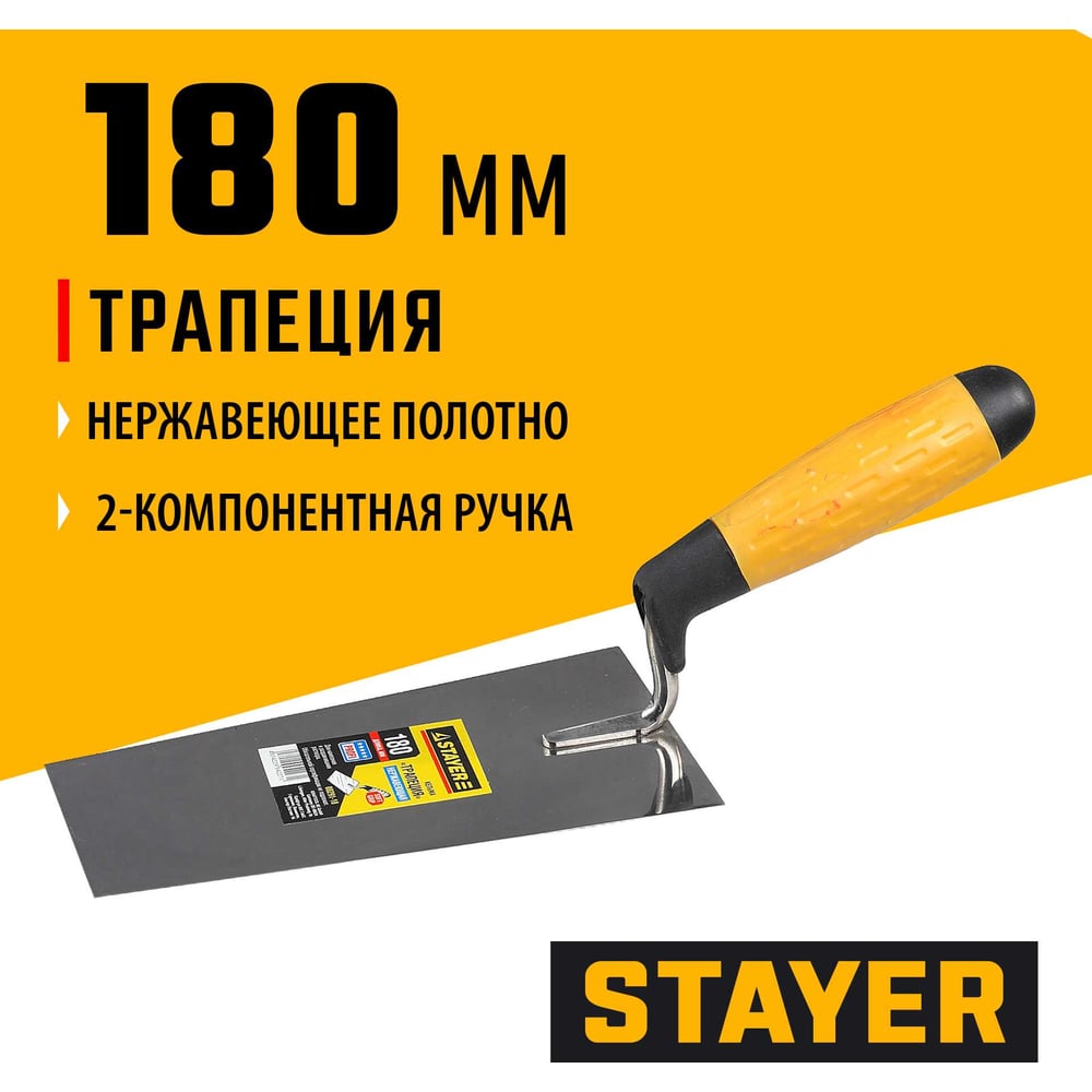 Кельма STAYER Professional трапеция, нерж. полотно, 2-х комп. рукоятка, 180мм 08291-18