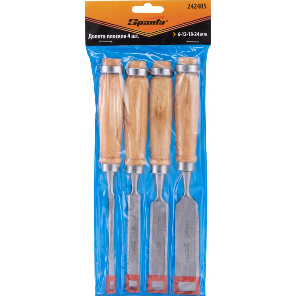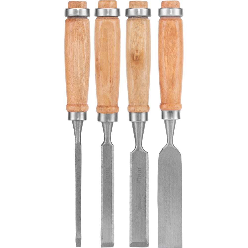 Набор долот-стамесок SPARTA 6-12-18-24 мм, плоские, деревянные ручки 242405