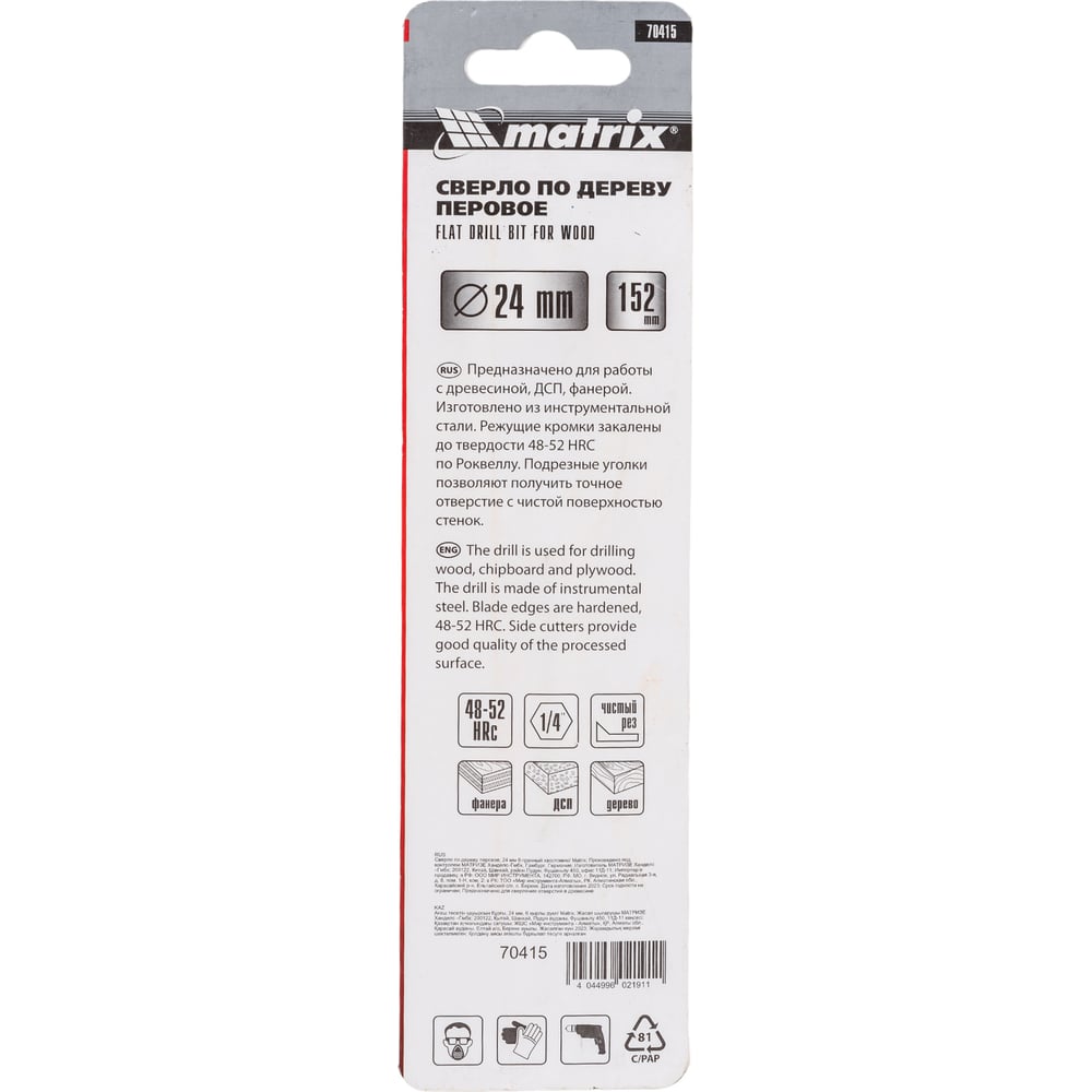 Сверло перовое по дереву (24х152 мм; HEX1/4) MATRIX 70415