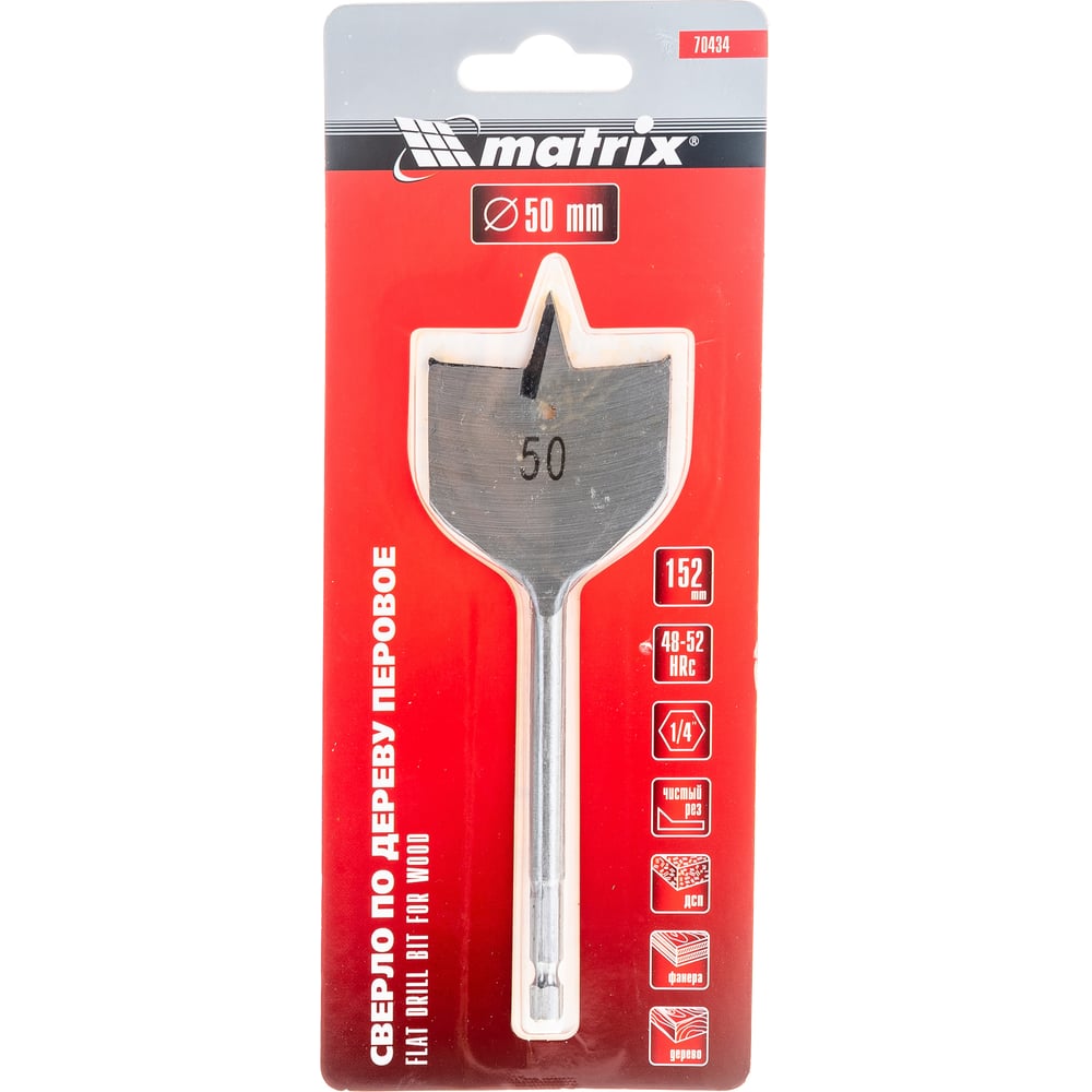 Сверло перовое по дереву (50х152 мм; HEX1/4) MATRIX 70434