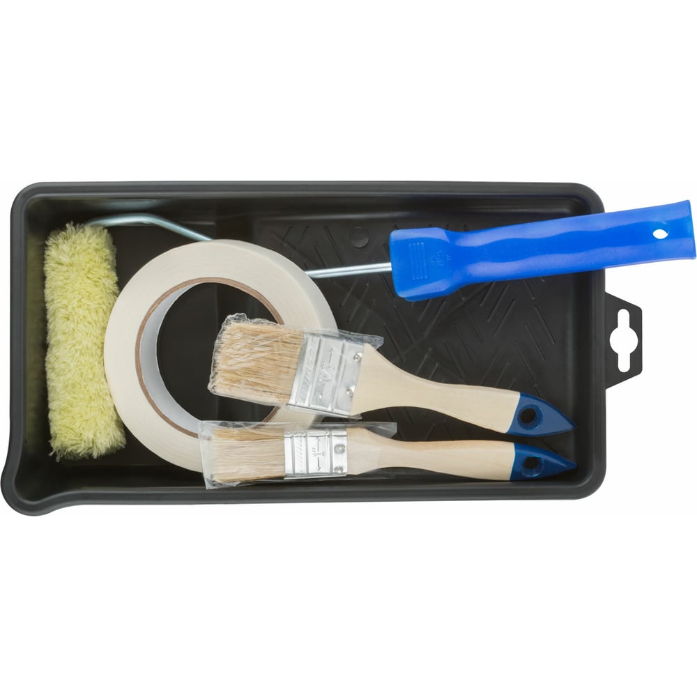 Набор для покраски дверей и окон: ванночка, валик, лента, 2 кисти FIT РОС 03035
