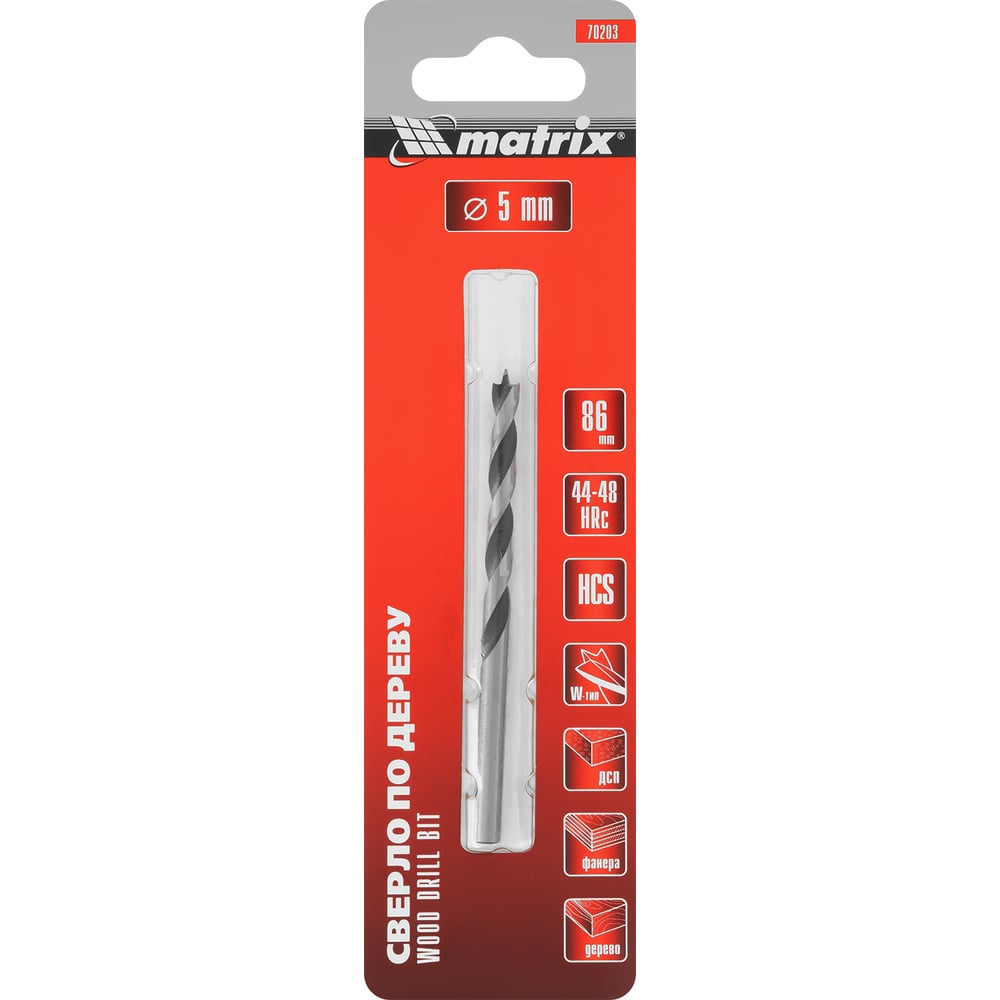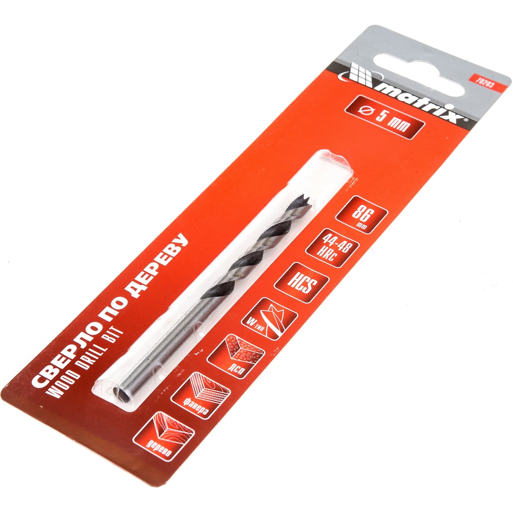 Сверло по дереву (5x85х52 мм; цилиндрический хвостовик) MATRIX 70203