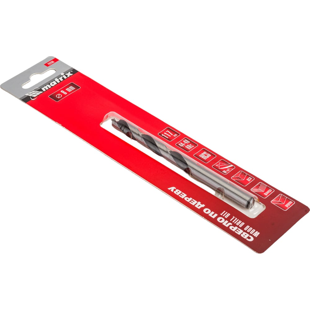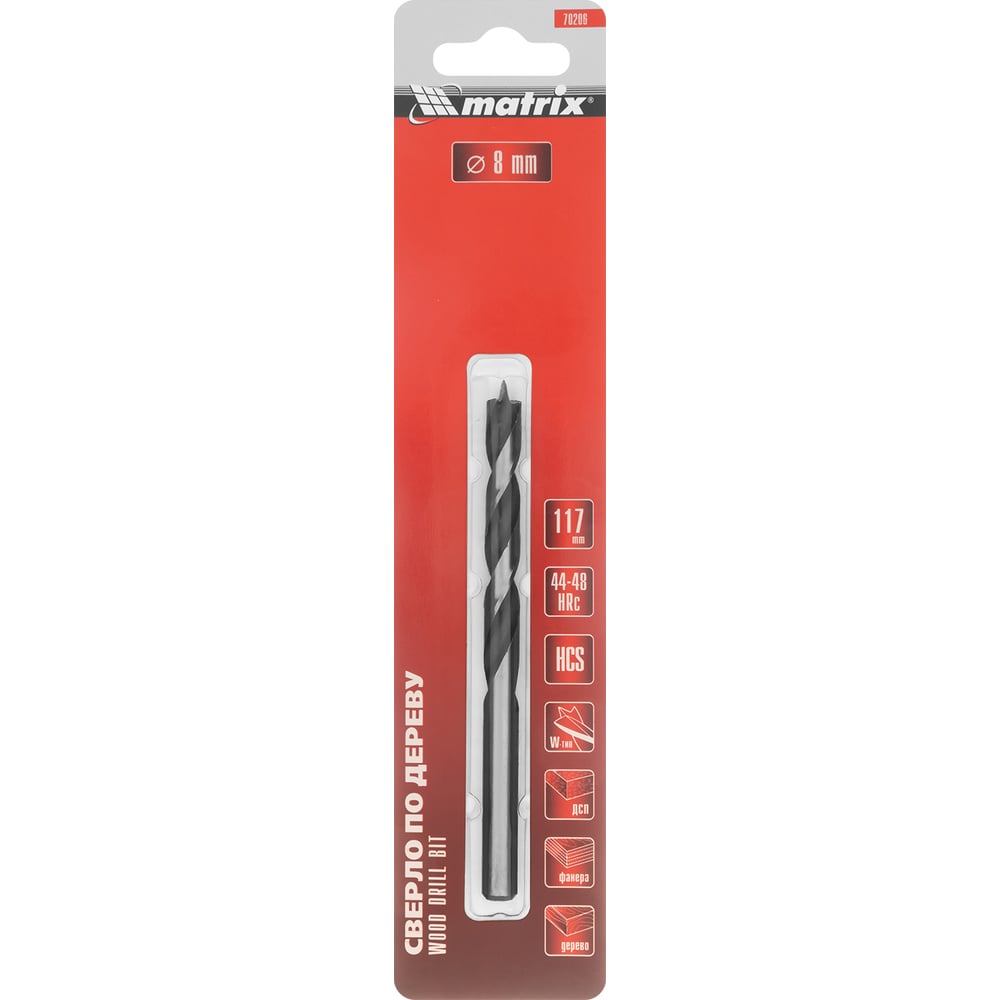 Сверло по дереву (8x115х75 мм; цилиндрический хвостовик) MATRIX 70206