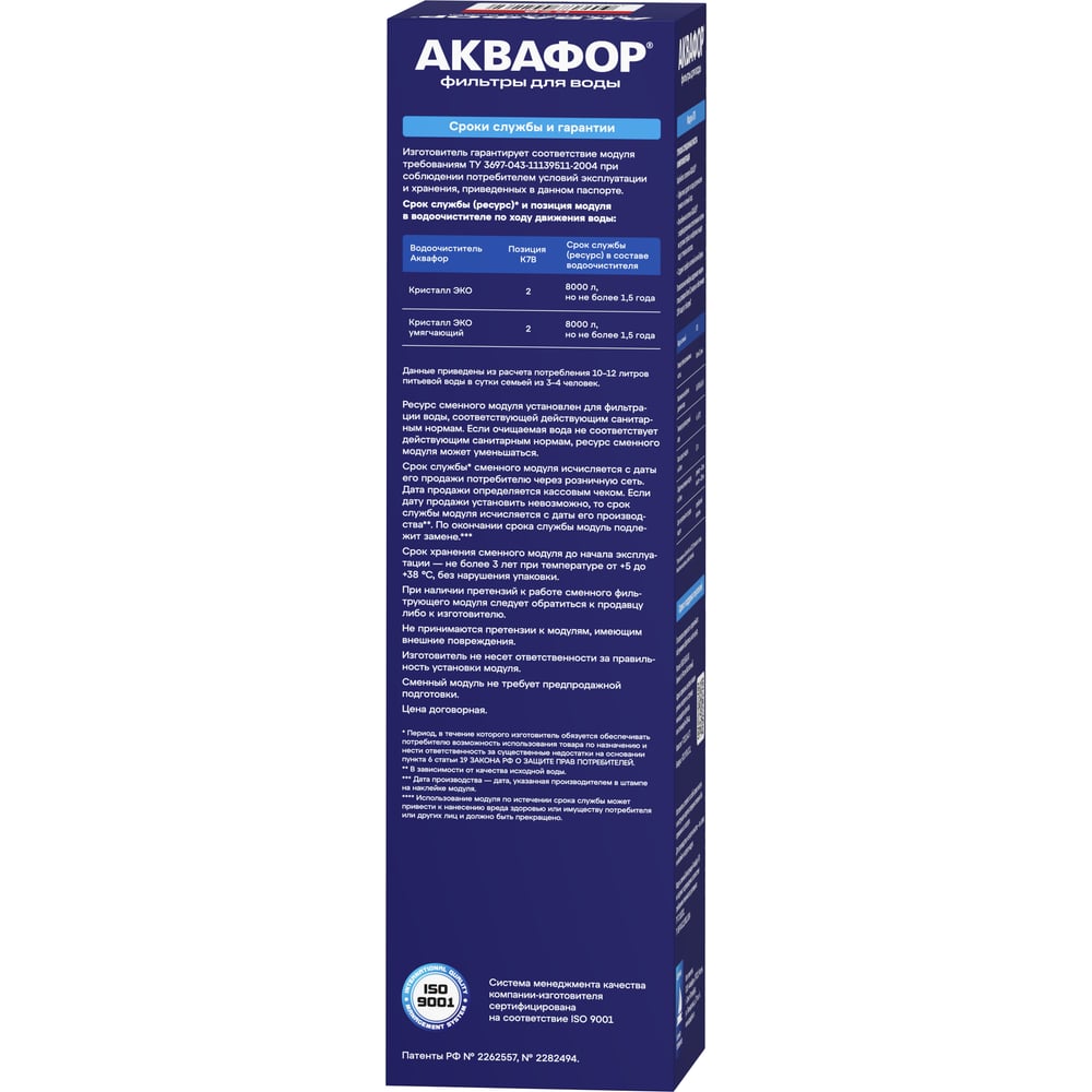 | Тип сменного модуля | Аквафор Кристалл |